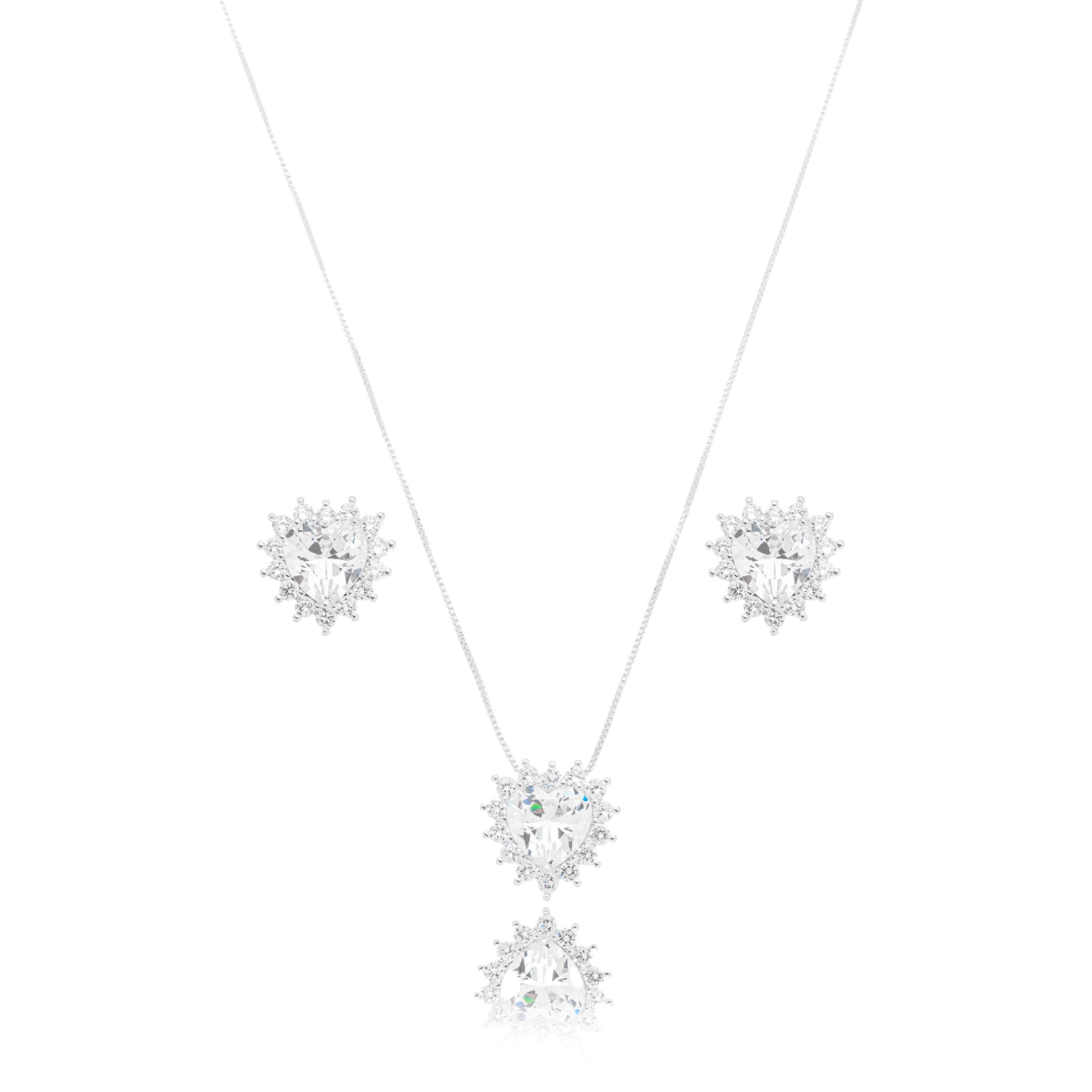 Descubra o brilho que transforma qualquer produção em um momento memorável. Este conjunto sofisticado, composto por colar e brinco com pingentes em formato de coração, traz o charme eterno das pedras cristais lapidadas com perfeição. Cada peça exibe uma pedra central em formato de coração.